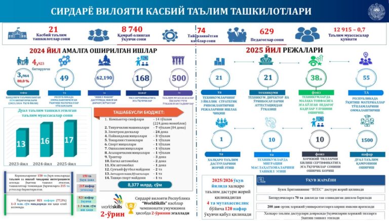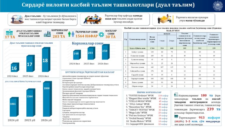 📊 Sirdaryo viloyati kasbiy ta’lim tashkilotlarida dual ta’lim tizimi (infogragika)