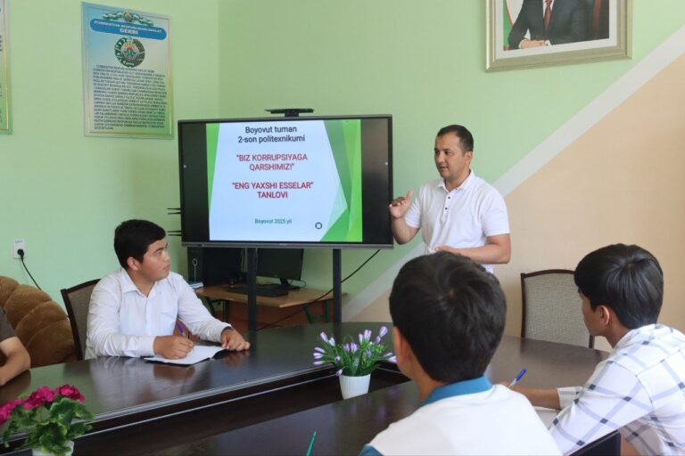 Guliston tuman politexnikumida “Korrupsiyaga qarshi kurashish — umummilliy vazifa” tamoyili asosida qator ma’rifiy va targ‘ibot tadbirlari tashkil etildi. Tadbirlar davomida […]