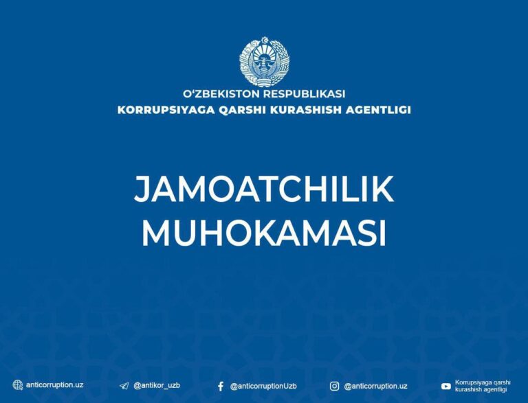 O‘zbekiston Respublikasida korrupsiyaga qarshi kurashish to‘g‘risidagi milliy maʼruzani ko‘rib chiqish tartibini takomillashtirishga qaratilgan qonuni loyihasining jamoatchilik muhokamasi davom (https://regulation.adliya.uz/project/4331/9928?contentLang=oz) etmoqda. […]