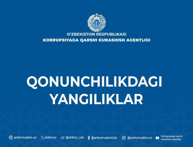 Vazirlar Mahkamasining joriy yilning 12-iyun kunidagi 362-son qarori (https://lex.uz/pdfs/7571945) bilan Korrupsiyaga oid huquqbuzarlik haqida xabar bergan yoki korrupsiyaga qarshi kurashishga […]